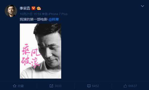 前段时间,李荣浩也高调在微博宣布参演电影,并艾特韩寒。