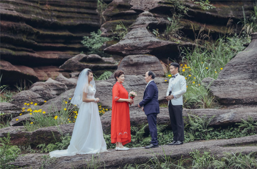 随后四组家庭齐聚红石林,通过惊险的破布攀岩后,蔡少芬张晋穿上了西装婚纱,重现婚礼浪漫时刻。作为已经结婚11年,拥有有2个孩子,现在还公布了三胎消息的夫妻,张晋蔡少芬一直恩爱如初,甜蜜依旧,可以说是娱乐圈中恩爱夫妻的典范。用张晋的话说:“看到蔡少芬穿婚纱的那一刻,完全是昨日重现,更坚定了我们两个要相互搀扶着一起走”。