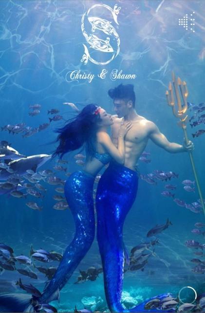 腾讯娱乐讯(文/夏克)钟丽缇与比自己小12岁的张伦硕11月8日将办婚礼,12日,他们向各方好友发出电子请帖,二人化身人鱼在水中畅游。钟丽缇1994年凭借《人鱼传说》迅速走红,美人鱼扮相也堪称经典,如今20多年后重现,别有一番滋味。