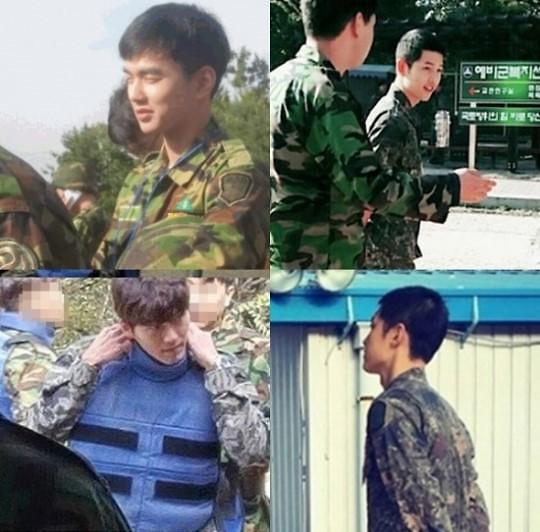 国际在线专稿:据韩国《亚洲经济》报道,19日,在韩国的某在线论坛上,网友发布了人气男星进行后备军训练时的帅照,俞承豪、宋仲基、玄彬和赵寅成登场迷倒粉丝。