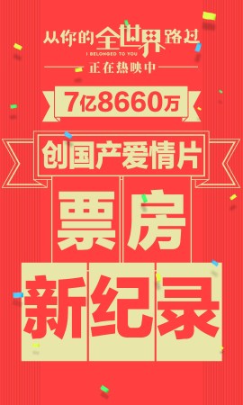 电影《从你的全世界路过》创国产爱情片票房新纪录