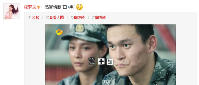 22日,沈梦辰晒出一张与孙杨同框的照片。并配文自我调侃:“感冒请服白加黑。”