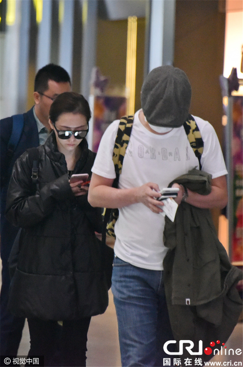 北京,22日,张靓颖、冯柯身穿黑白情侣装同框现身机场。不久前冯柯被张靓颖妈妈“手撕”的“家庭闹剧”似乎告一段落,两人化身低头族全程默契玩手机无交流。