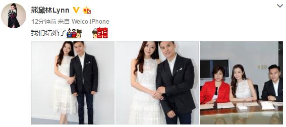 上个月才被媒体曝出与男友郭可颂拟结婚通知书,谁知27日晚,熊黛林就在微博宣布了婚讯,声明只有简简单单五个字“我们结婚了”。