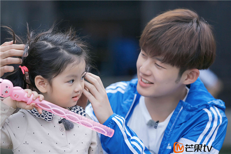 《爸爸去哪儿4》本周将继续湘西红石林的旅程,老爸萌娃们在乡野山水间尽享乐趣,亲子间的互动也越来越甜蜜。实习奶爸董力的“新手带娃”方式让曾网友哭笑不得,一直在狂补“育儿大法”的他本周主动挑战给女儿阿拉蕾洗头,并为宝宝独创“阿拉蕾造型”。虽然新手老爸还手脚笨拙,甚至打湿了阿拉蕾衣服,但可心的阿拉蕾跟老爸的甜蜜互动依然不停,穿着董力的超大号外套质问老爸“你搞得定我吗?”,甜蜜再次溢满屏幕。