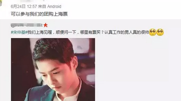 今年6月,王小姐在发现官方平台门票售罄后,在微博发布寻求宋仲基上海粉丝见面会的消息,希望可以找到新的票源一睹偶像真容。6月24日下午,一则转发让王小姐兴奋不已,“亲,可以参与我的团购上海票。”寻获门票的喜悦让王小姐放松了警惕,她立即联系对方添加微信,在微信那头,一名男子再三保证所售门票系独家渠道获取后,王小姐为自己和朋友订了11张门票,并通过微信支付了共计19000余元的票款,双方约定付款后门票通过快递交付。
