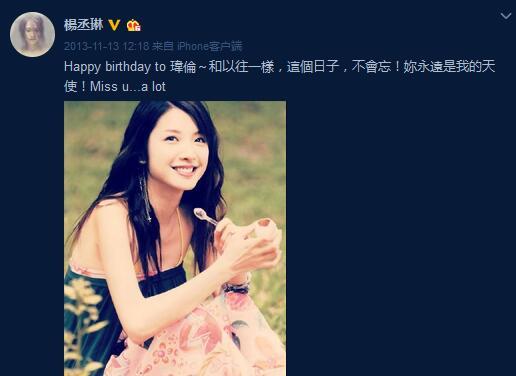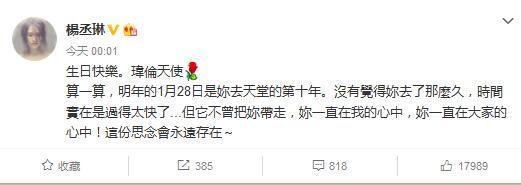 11月13日,是因车祸去世的台湾女演员许玮伦的38岁冥诞,她的生前好友杨丞琳凌晨在微博发文缅怀,感人字句让网友泪奔。