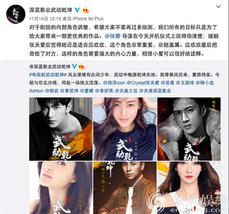 张天爱遭抹黑换角 疑官方发声明斥营销号(图)
