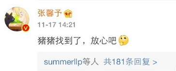 网易娱乐专稿11月17日报道 论最强蹭热点,你是不是只服张馨予?11月17日,据“名侦探赵五儿”爆料,林丹在妻子谢杏芳孕期出轨。在林丹的出轨视频中,张馨予因在小区找丢失的狗意外入镜。网友去张馨予微博下询问“狗狗找到了吗?”张馨予在评论回复:猪猪找到了,放心吧!