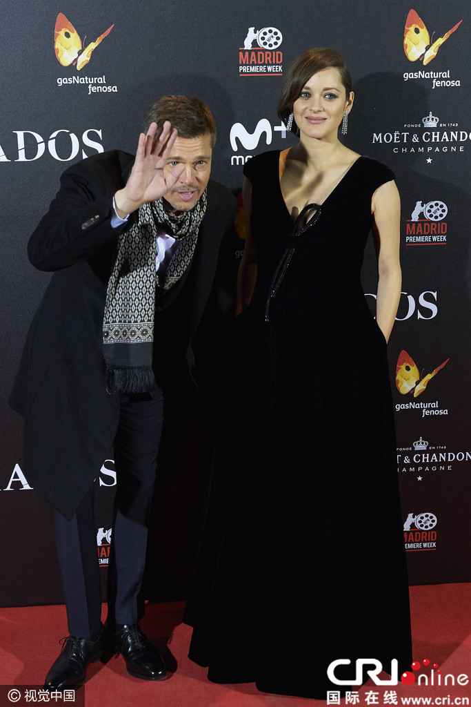 马德里,当地时间2016年11月22日,电影《间谍同盟》(Allied )首映礼。玛丽昂·歌迪亚(Marion Cotillard)身着黑色深V长裙巧遮孕肚尽显优雅气质,布拉德·皮特(Brad Pitt)黑色大衣配格子围巾尽显绅士风范,两人亲密贴脸耳语热聊尽显亲密,“小三”传闻疑似坐实。
