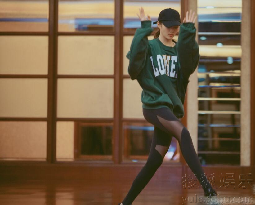 11月27日晚,关晓彤晒出一组自己练舞的照片,照片中她身穿一件绿色的宽大外套,一条黑色的紧身裤凸显她的大长腿。