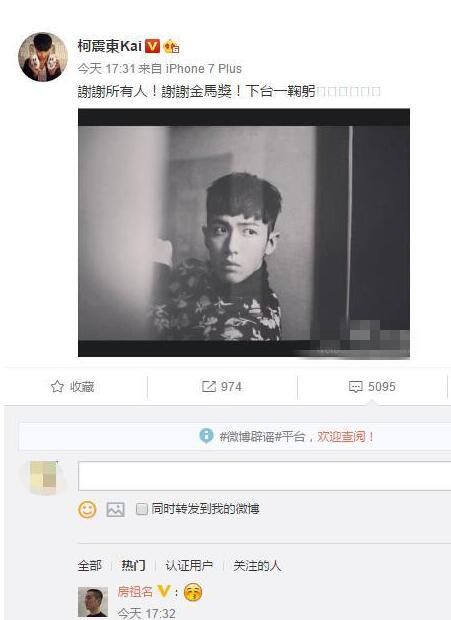 柯震东无缘金马影帝发文感慨 房祖名与之互动鼓励