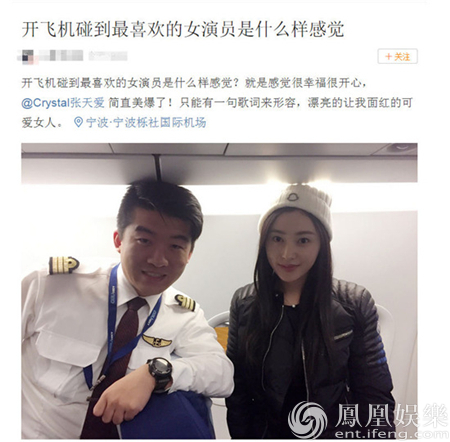 张天爱深夜返京装扮低调 笑容灿烂与机组人员合影