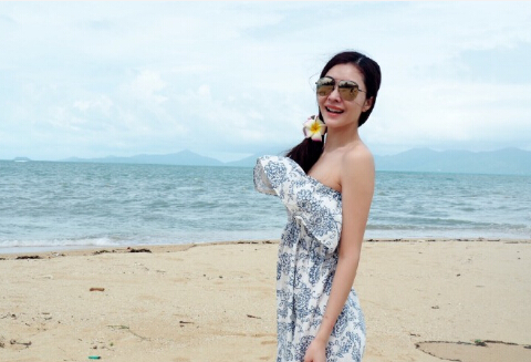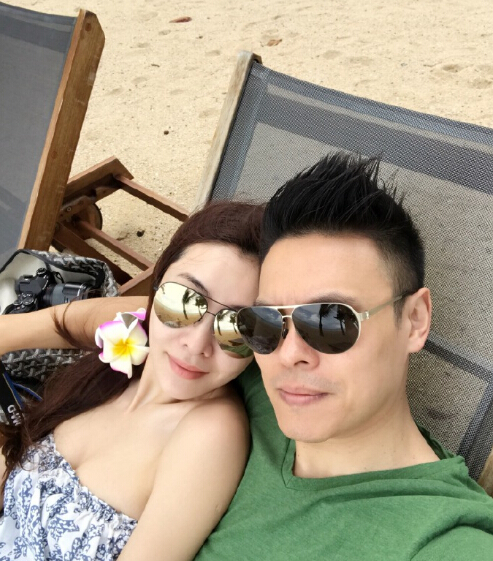 熊黛林海边度蜜月 和老公依偎十分甜蜜