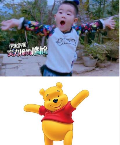 沙溢儿子撞脸维尼 沙溢晒小鱼儿和小熊维尼对比照