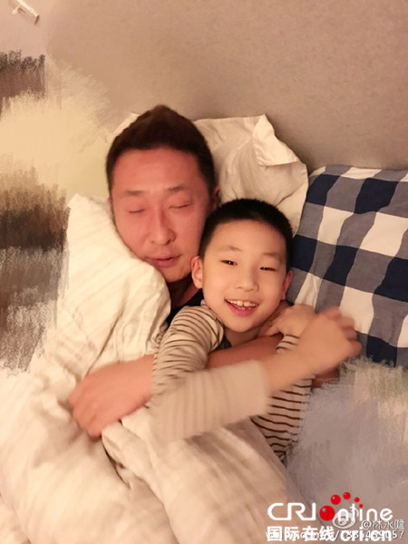 林大竣搂着爸爸赖床不起 林永健:幸福就这么简单