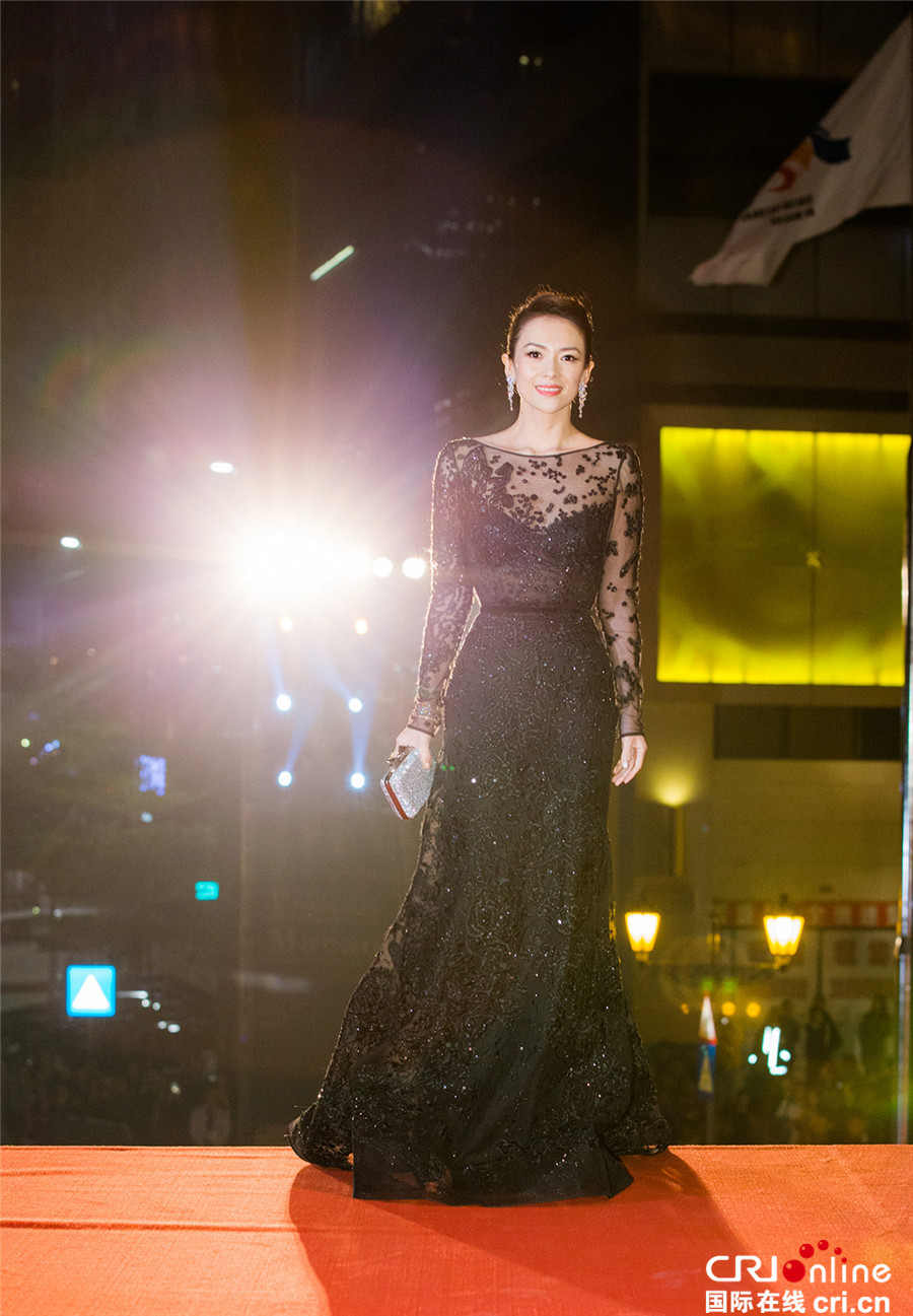 澳门国际影展开幕 章子怡着蕾丝裙现身露美背(图)