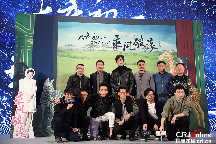 彭于晏27日现身电影《乘风破浪》定档发布会,与韩寒导演等主创共同宣布该片正式加入2017年贺岁档大军,将于大年初一全国公映。《乘风破浪》是彭于晏首次与韩寒合作,他说,“导演是通过微博私信找我的,一开始我还问他‘你是本人吗?’早就听说韩寒有很强大的迷妹后援团,这次见识到了,我希望借此机会可以加入这个组织,希望他们也可以支持我。”片中,彭于晏饰演生长于90年代末的阿正,在第一款海报中,他以中分发型与水洗牛仔服示人,一个时代感十足的小镇青年呼之欲出。彭于晏透露,韩寒导演之所以选择他来出演,是看中了他身上的幽默感。“导演让我放心,说会在这部戏里展现出我好玩的一面。”