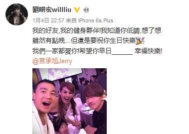 原来就在1月4日,周杰伦的好友、台湾男星刘畊宏晒出和言承旭的合影,照片中他们一家三口和言承旭合影,刘畊宏在4日的微博发文里,还意味深长地祝福言承旭早日幸福快乐。