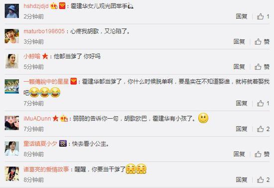 网友调侃:“我要去@胡歌,今晚一个撒狗粮,一个当爸爸,他在干什么”。
