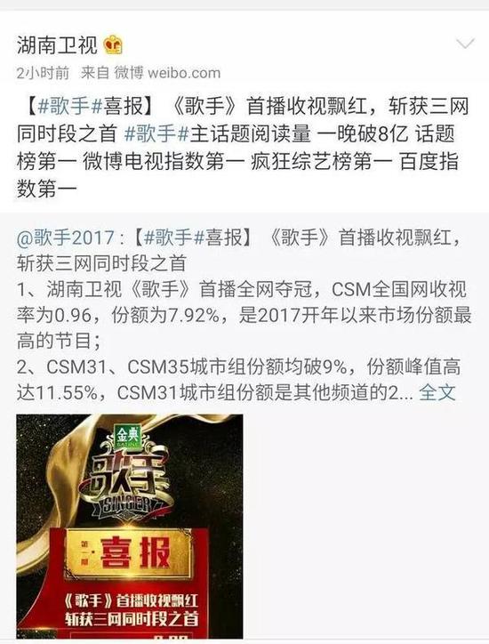 网易娱乐1月24日报道 上周六晚上湖南卫视的收视率应该很高吧,两档大势综艺热播——《快乐大本营》和《歌手》。