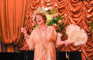 《跑调天后》听起来荒诞,但历史上确有其人其事。这位名为弗罗伦斯·佛斯特·珍金丝的业余女高音不仅录制了一张广为流传的专辑,后来更是唱进了卡内基音乐厅。根据这个故事改编的法国电影《玛格丽特》,女主角凯瑟琳·弗洛去年就获得了第41届法国凯撒电影奖最佳女主角奖,作为后来者的《跑调天后》,故事更忠于真人真事,也更富有喜剧片轻松、幽默又励志的色彩。