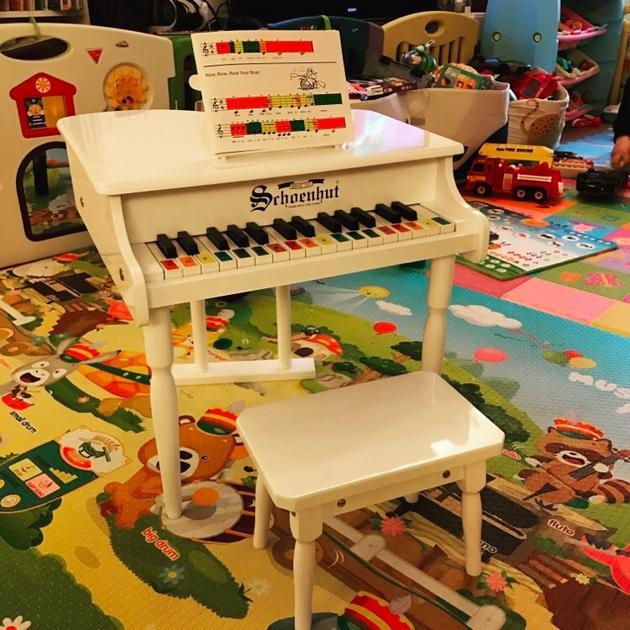 照片中,一架小小的白色钢琴摆在儿童房泡沫地毯上,十分可爱,引得一众网友已经开始期待飞飞和翔翔坐在钢琴凳上的小王子模样。