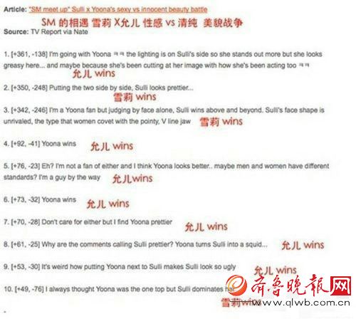 再看看我们这边的评论,虽然也有说允儿漂亮的,但很多人都表示排除外界因素雪莉就是漂亮,颜很有辨识度,气质很独特。