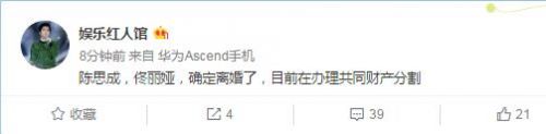 陈思诚佟丽娅离婚 在办财产分割还没领离婚证