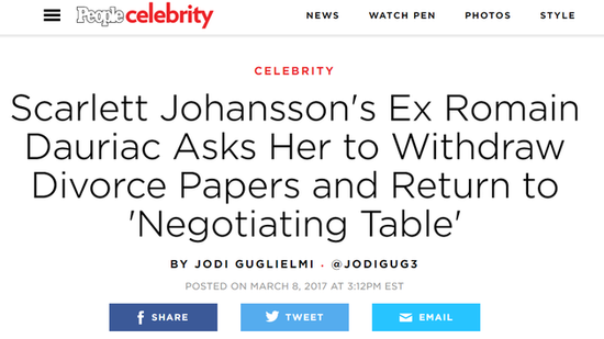 网易娱乐3月9日报道 据台湾媒体报道,“黑寡妇”斯嘉丽约翰逊(Scarlett Johansson)年初爆发婚变,周二正式递件诉请和法国记者罗曼·达瑞克(Romain Dauriac)离婚,达瑞克的律师周三表示“我们很震惊”,达瑞克也发声明呼吁斯嘉丽约翰逊私下协商,“我恳求她及时撤回离婚文件,回到谈判桌上,尽管可能会很不舒服”。