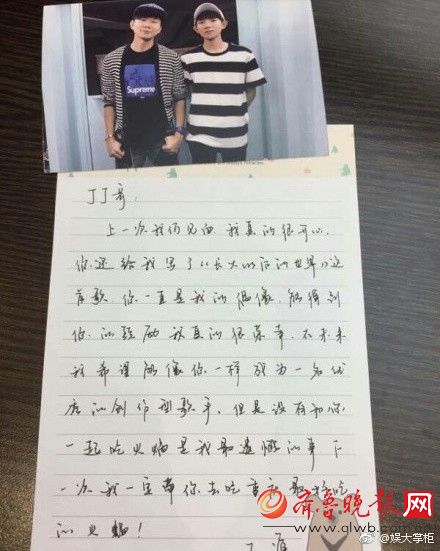 王源给林俊杰写了一封信
