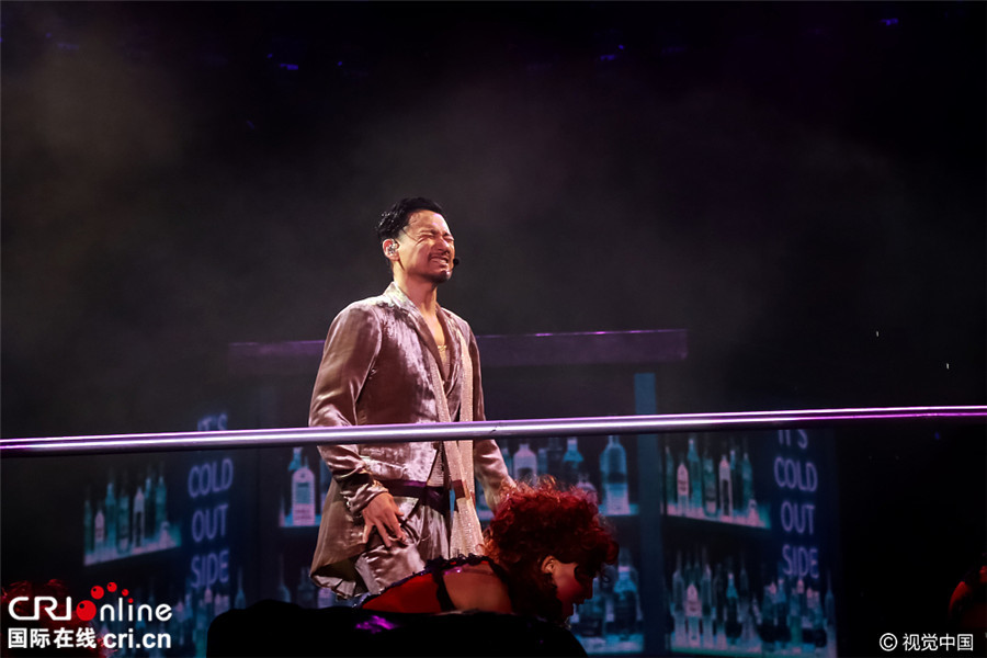 2017年3月31日,歌神张学友2017巡回演唱会在福州海峡奥体中心拉开序幕,满场6万歌迷顶着风雨一睹偶像姿容,一起感受歌神魅力。张学友身穿华丽丽的银色燕尾服热力开唱,劲歌热舞还再现招牌动作。陈浩/视觉中国