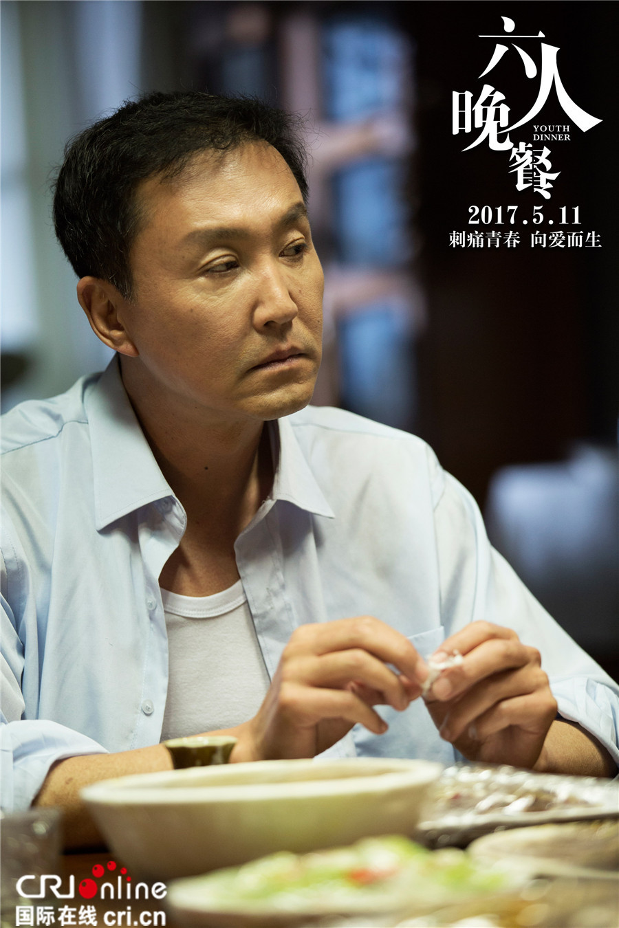 在《六人晚餐》中饰演窦骁父亲丁伯刚的正是近期因热播电视剧《人民的名义》而备受关注的实力派演员吴刚。与李达康不同的是,吴刚此次饰演的丁成功是一个地道的工人、一个酒鬼。丁伯刚既是一个善良简单的人,也是一个自己很低、却向往“高”的粗人。他不仅深陷在厂区的辉煌过去中,更是在和苏琴的情感关系中不能自拔。作为吴刚近两年唯一的一部电影作品,他在《六人晚餐》中奉献了十分精彩的演出,既诠释了一个落魄的老厂工在面临厂区改制下的无奈和窘迫,又深度刻画了一个关心儿子,与儿子“斗智斗勇”的父亲的伟大形象。而在电影中,有很多两家人一起吃饭的镜头,这样观众为之开心:“在《人民的名义》里达康书记一直没空用餐,这次终于吃上饭了!”