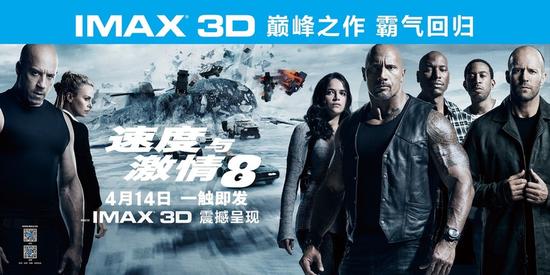 4月14日,《速度与激情8》登陆中国超390家IMAX影院。《速8》IMAX首日零点场即斩获850万元人民币,成为史上周五开画影片中IMAX零点场票房最高的一部。截至14日下午五时左右,《速8》中国总票房已接近三亿元人民币,一路高歌猛进”驶入”首周末。公映当日,IMAX在北京打造全国首个限时香氛IMAX影院,将“豪车”的专属味道带进影院,为观众带来听觉、视觉和嗅觉的全方位感官体验。
