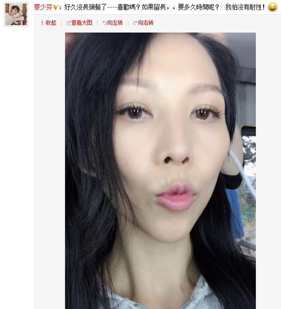 网易娱乐4月19日报道 4月18日,蔡少芬在微博分享了她新换的长发造型,称:“好久没长头发了……喜欢吗?如果留长……要多久时间呢?我怕没有耐性!”只见图中的皇后凉凉身穿灰色卫衣,看上去心情不错。
