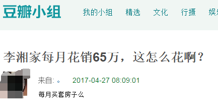 突然在豆瓣上看到一个帖子,说李湘家里月开销高达65万,虽然震惊,但是还是半信半疑。