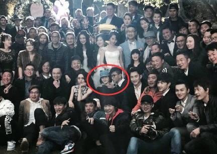 在一大片人的合影当中,吴奇隆搭着刘诗诗的肩膀,指着前方,一脸的宠溺和疼爱。