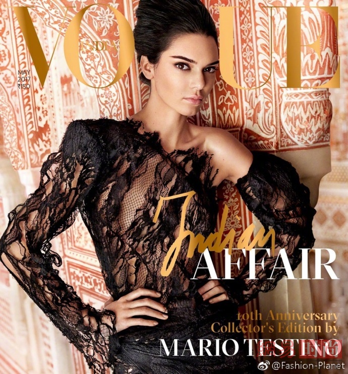 近日,Kendall Jenner登上了印度版《VOGUE》的封面,大片里Kendall Jenner在具有印度建筑风格的背景下展现了自己的时尚风格。(来源:网易时尚)