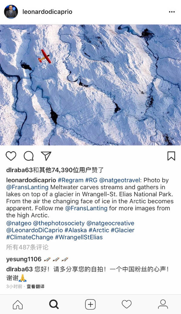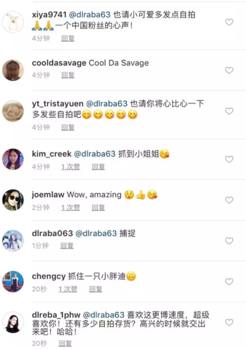 迪丽热巴最近跑去莱奥纳多的ins底下用中文留言……