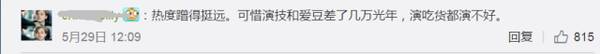 还有说“热度蹭得挺远,可惜演技和爱豆差了几万光年,演吃货都演不好”……