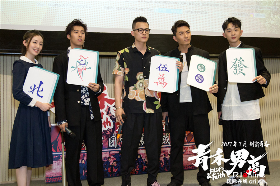 国际在线专稿:6月9日,电影《青禾男高》主演欧豪、周游、丁冠森、张宁江、夏恩一行五人来到中国传媒大学与学生影迷见面,欧豪真情流露感谢粉丝,主演和现场大学生共同演绎电影经典剧照,现场抛洒送签名“雀牌”。