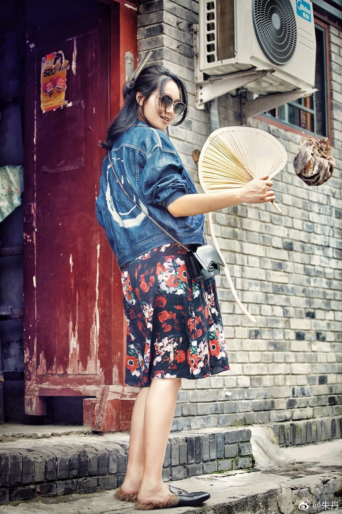 7月27日,朱丹在微博晒出一组照片并发文:“来,今天跟姐一起去穿胡同去。”照片上朱丹头发往后扎成半丸子头,身穿普兰色缀花孕妇裙,配上深蓝色牛仔衫,还有脚上带毛的皮拖鞋,看上去鲜明漂亮。
