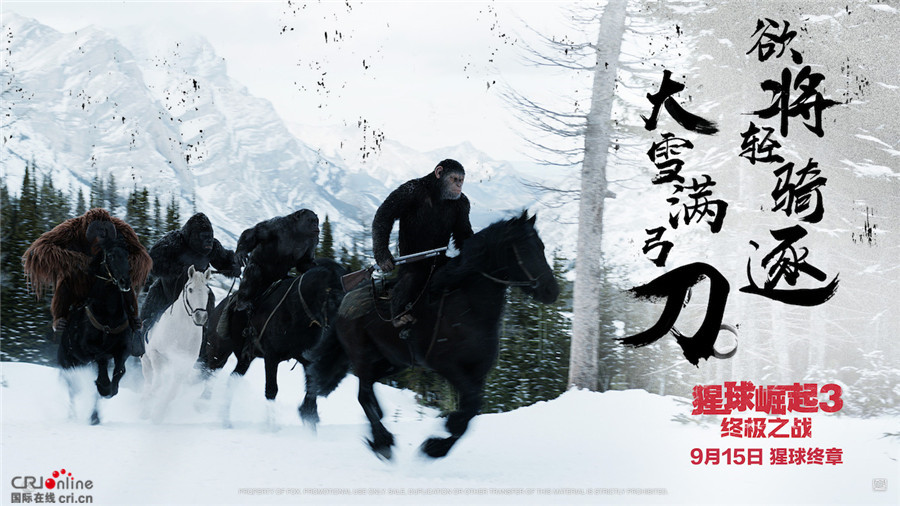 《猩球崛起3》古风海报曝光 凯撒风雪马嘶豪迈亮剑