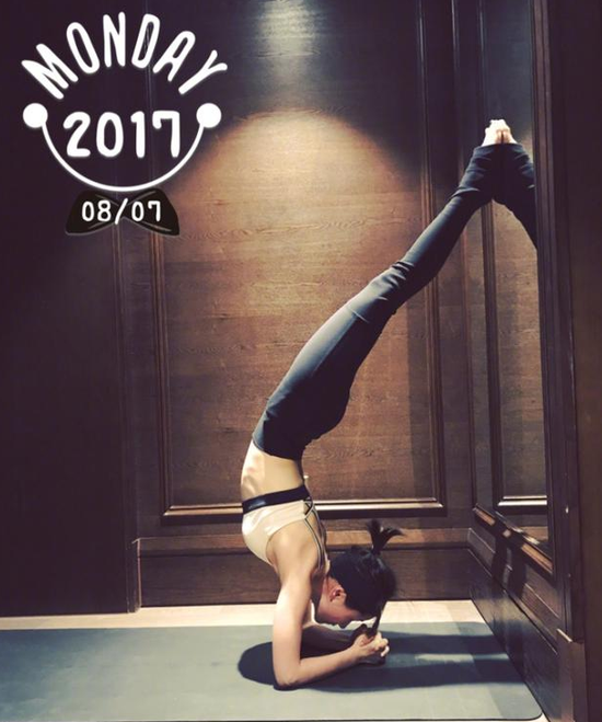 8月7日,休息了两个礼拜没有练瑜伽的王子文终于回归,晒出了自己高难度倒立的瑜伽照片,配文“越过肩头”。经过这段时间的练习,本来就很瘦的王子文看起来更瘦了。