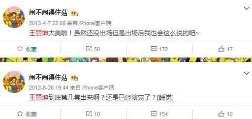 不过最意味深长的是,林更新在大学期间交往的一任很有名的富家女友“闹菇”,曾在2012、2013年多次发微博夸奖王丽坤的美貌。