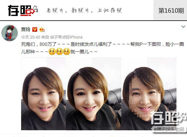 近日,“搞笑担当”贾玲晒出自拍,希望网友帮她P瘦点,微博一出,热心网友们便大展身手。她的自拍图被以打上马赛克的方式缩小、甚至被P成了蛇精脸,虽然大多数都是恶搞,但还是饱含网友们的爱意。事实上,娱乐圈中这样被网友“虐”的明星并不在少数,但一个愿打一个愿挨,“笑”果非凡。