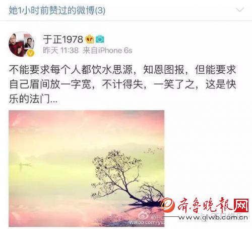 与此同时,还点赞了于正一条更让人不解的微博。