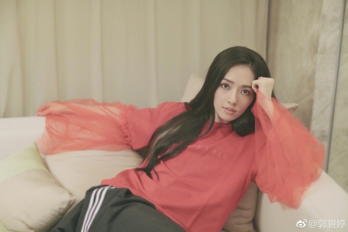 9月6日,郭碧婷晒出一组写真照,照片中她一头黑色长发披肩,身穿裸粉色上衣搭配黑色运动裤,仙气中带着青春活力。时而倚在沙发上,时而俯趴在墙边,温柔可人。网友留言写道:“就喜欢你用这种眼神看着我”、“啊好看的说不出话来”。