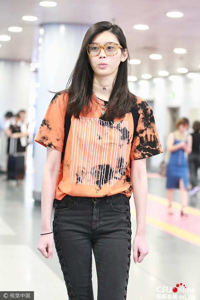 奚梦瑶清晨赶飞机素颜不惧被拍 超模的好底子给满分