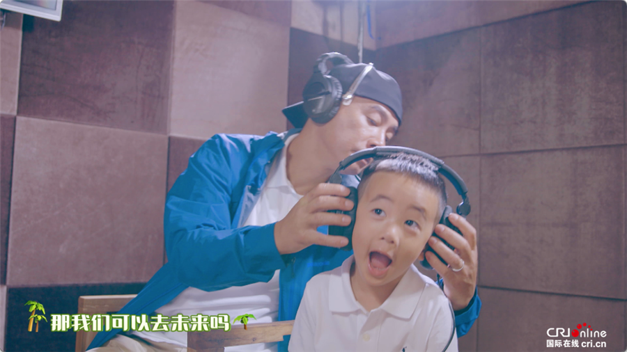 前奏刚开始,Max和Jasper就奶声奶气的向老爸“发问”,帅气逼人的吴尊和酷酷的陈小春忙不迭回答宝贝们的问题,语气超温柔,宠溺一百分!萌娃们录制时也显得格外认真,戴上比小脑袋还大的监听耳机,在老爸认真指导下一字一句唱得有模有样,胖胖的小手合着节奏为自己打call。全新主题曲歌词天马行空,更符合小朋友唱儿歌的感觉,欢快轻松,让人情不自禁的想跟着爸爸和宝贝们一起摇摆。